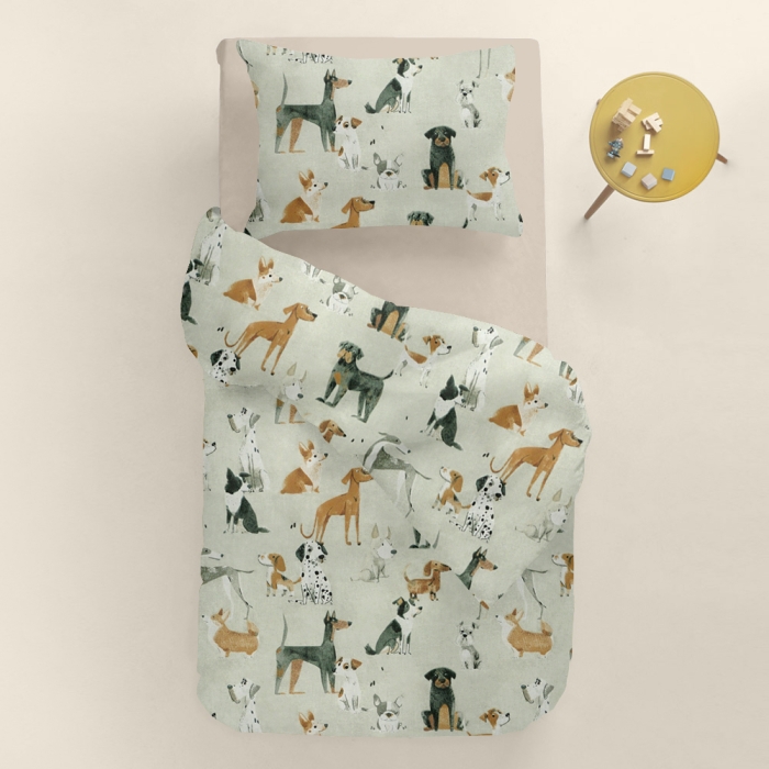 Теги: , , Оливковий, Тварини, Ранфорс, 155х215 см, Підліткова постіль без простирадла HAPPY DOGS