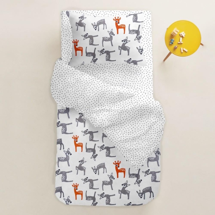Теги: , Оленята сірі, помаранчеві на білому PL 09807, Сірі точки на білому PL 09788, Сірий, Тварини, Ранфорс, 155х215 см, Підліткова постіль без простирадла BAMBI