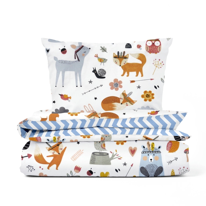 Теги: , Звірі-індіанці на білому PL, Зигзаг Блакитний на білому PL - 00098 / T - 5002, Білий, Тварини, Ранфорс, 155х215 см, Підліткова постіль без простирадла WHITE INDI ANIMALS