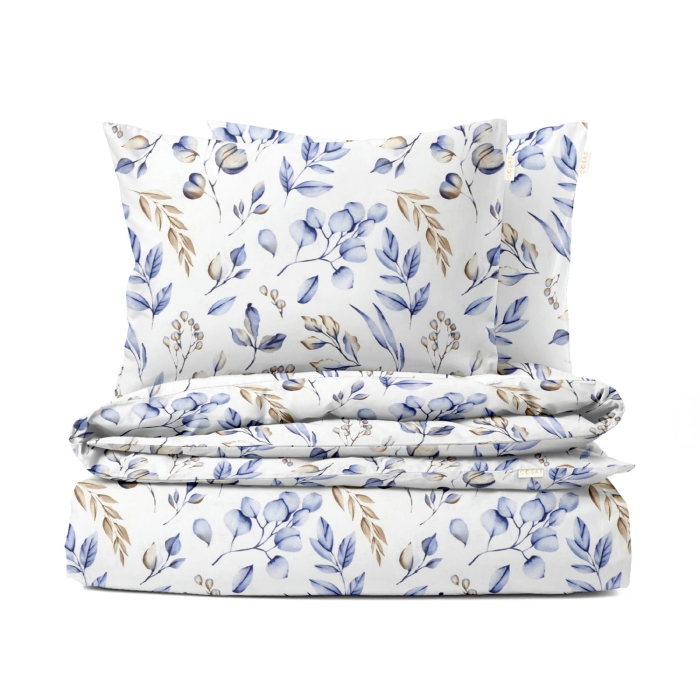 Полуторна постільна білизна COSAS упакована у фірмову картонну коробку, яка також підійде на подарунок.