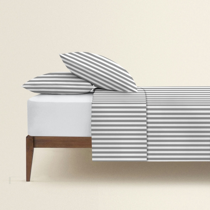 Теги: , Смуга сіра на білому Т 5020, Сірий, Лінії, Ранфорс, 200х220 см, Євро постіль без простирадла LINES