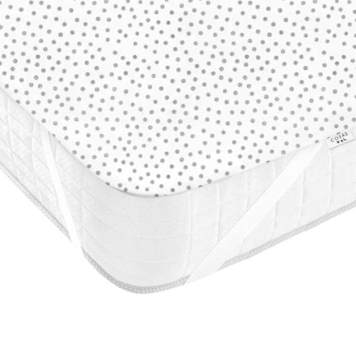 Водонепроникний наматрасник COSAS незамінний під час денних ігор або в ліжечку під час сну. Екологічний матеріал і фіксатори на резинці відмінно захищають матрац і диван від будь-яких видів забруднень, залишаючись сухим в самих непередбачених випадках.