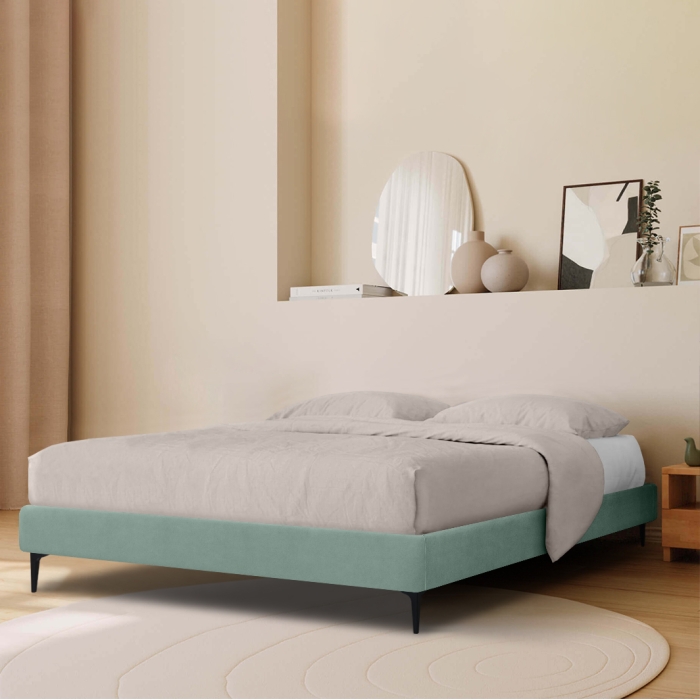 Для оббивки ліжка COSAS використовується м'який матовий велюр.