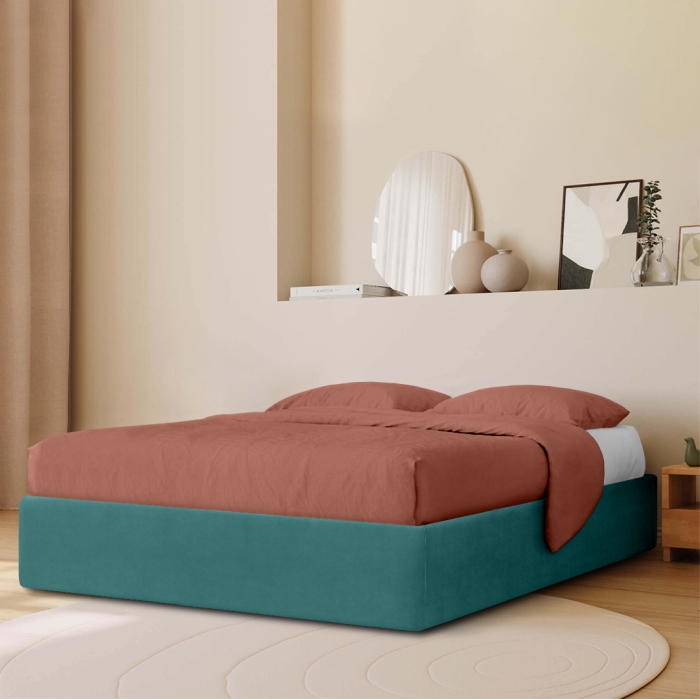 Для оббивки ліжка COSAS використовується м'який матовий велюр.