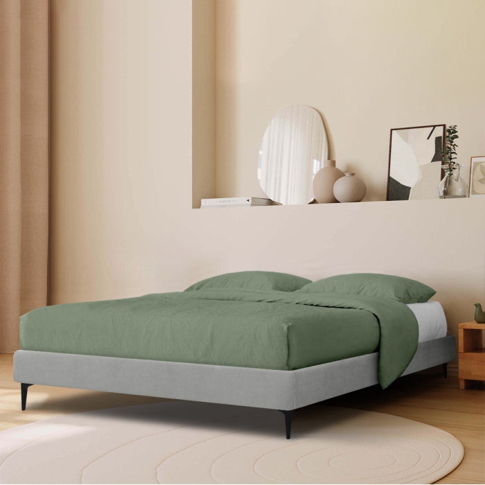 Для оббивки ліжка COSAS використовується м'який матовий велюр.