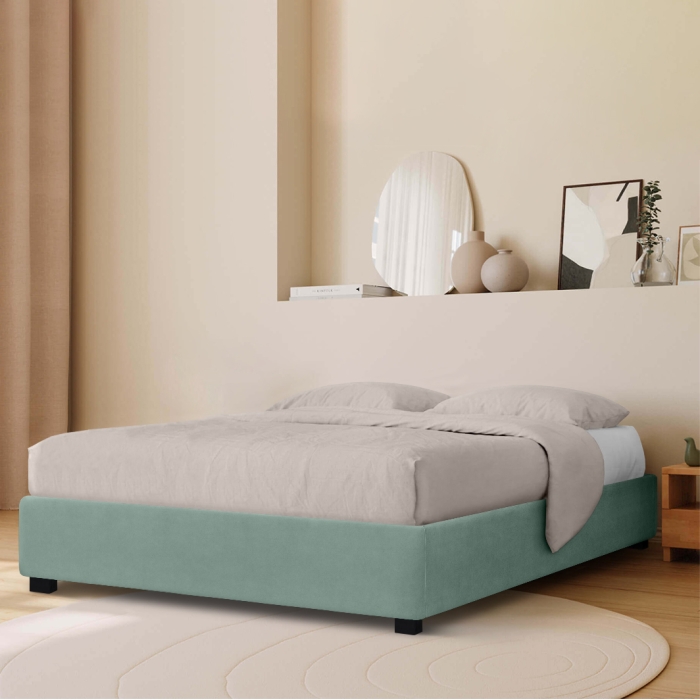 Для оббивки ліжка COSAS використовується м'який матовий велюр.