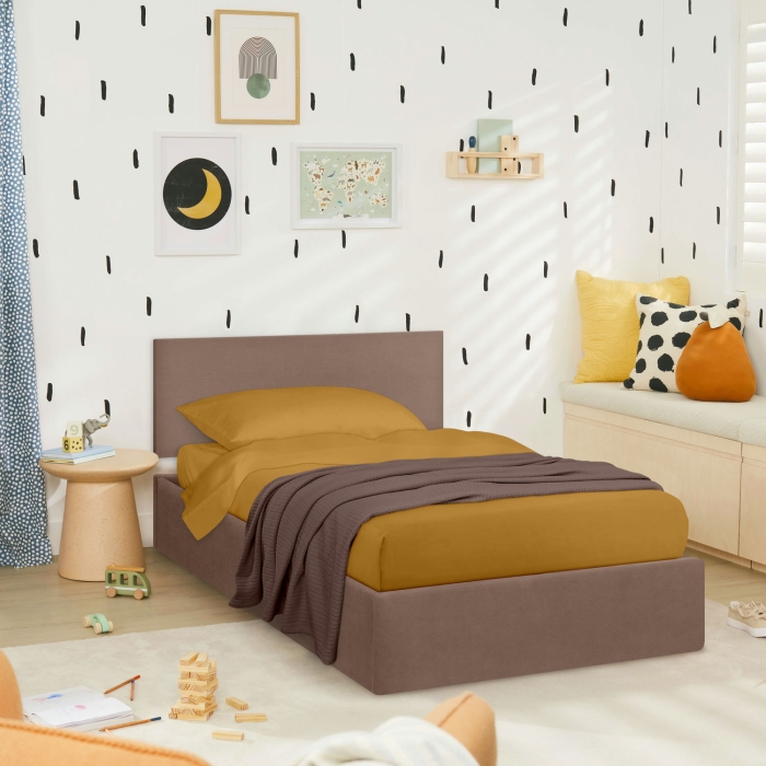 Для оббивки узголів'я COSAS використовується м'який матовий велюр. Це приємна на дотик тканина, яка має високі показники зносостійкості, екологічно чиста з приємною ніжкою текстурою.