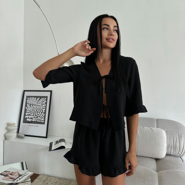 - Стильний вигляд – вишуканий крій робить комплект не лише зручним, а й привабливим.