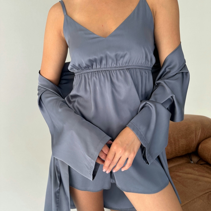 • Шовковий халат: елегантний фасон довжиною 75 см, що додає витонченості.
