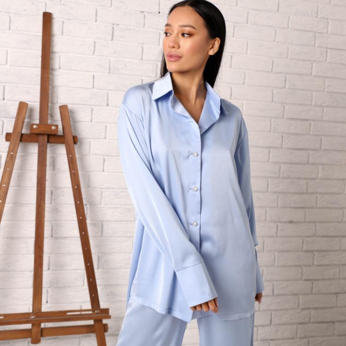 • Сорочка на ґудзиках – вільний крій, комір і високі манжети додають витонченості.