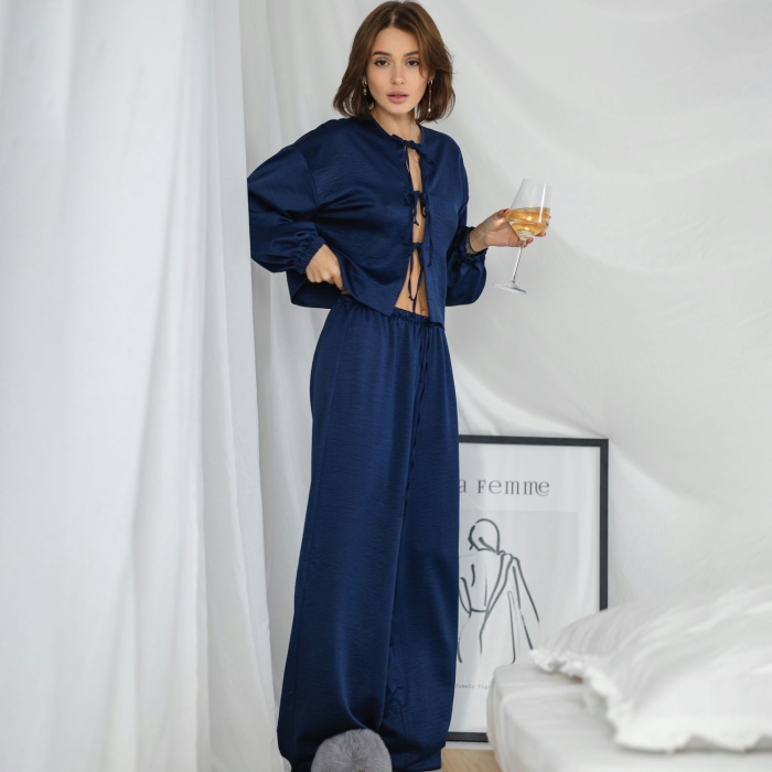 FREYA – це ідеальне поєднання жіночності, комфорту та елегантності в домашньому костюмі. Виготовлений із легкого та приємного на дотик матеріалу – шовкової віскози, що дарує м’якість, ніжність і вільний струмуючий силует.
