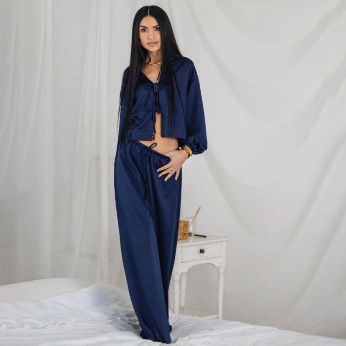 FREYA – це ідеальне поєднання жіночності, комфорту та елегантності в домашньому костюмі. Виготовлений із легкого та приємного на дотик матеріалу – шовкової віскози, що дарує м’якість, ніжність і вільний струмуючий силует.