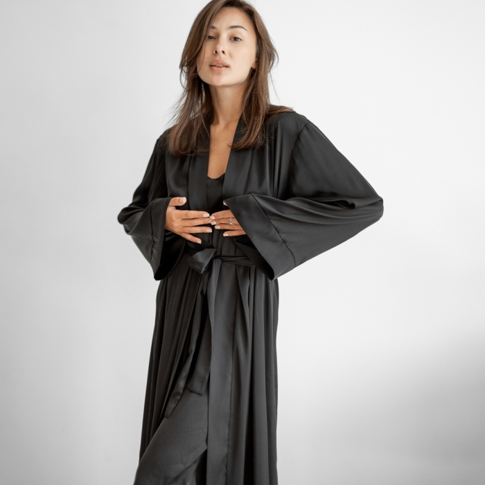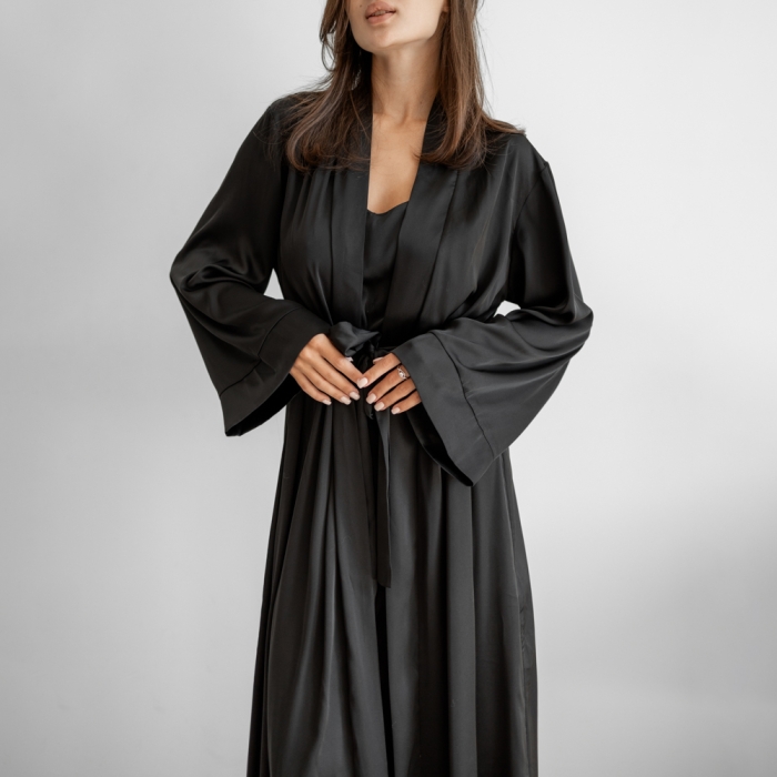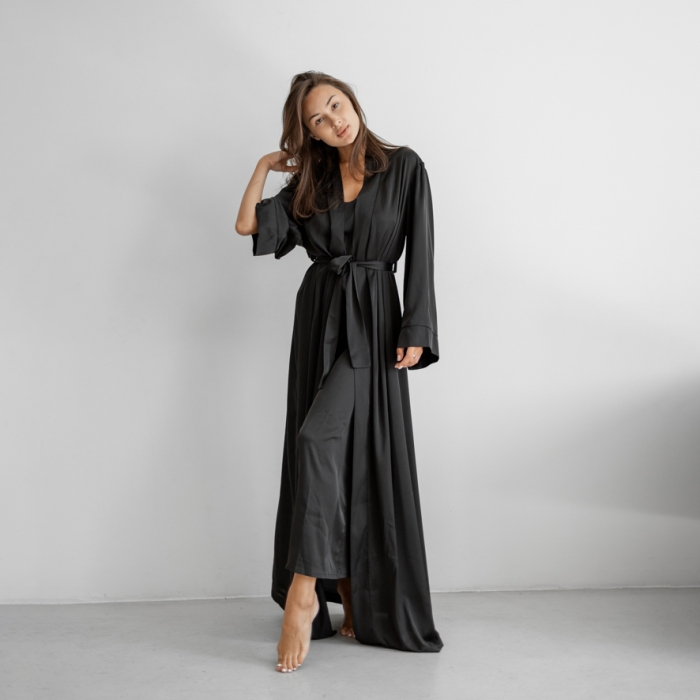 • Максі-довжина – довгий шовковий халат вишукано облягає силует, надаючи особливого шарму та грації.