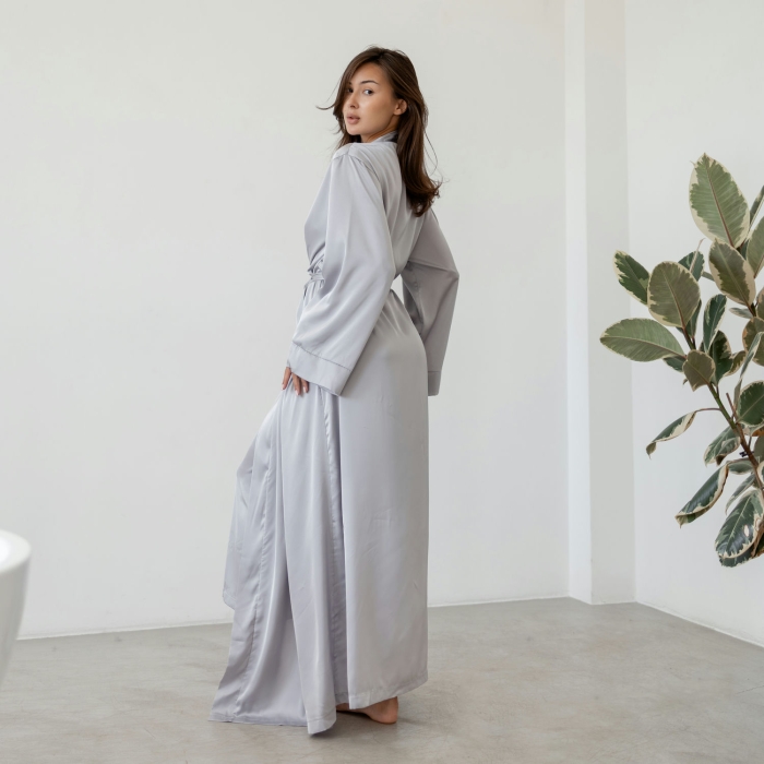 • Максі-довжина – довгий шовковий халат вишукано облягає силует, надаючи особливого шарму та грації.
