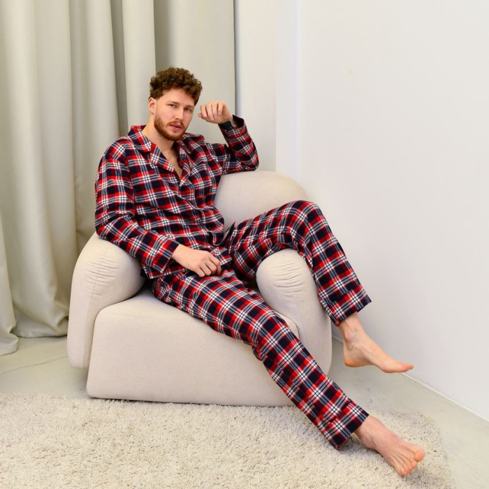 - Зручний крій – чоловіча піжама в клітинку має комфортний фасон, що не обмежує рухів, дозволяючи вам почуватися вільно і зручно.