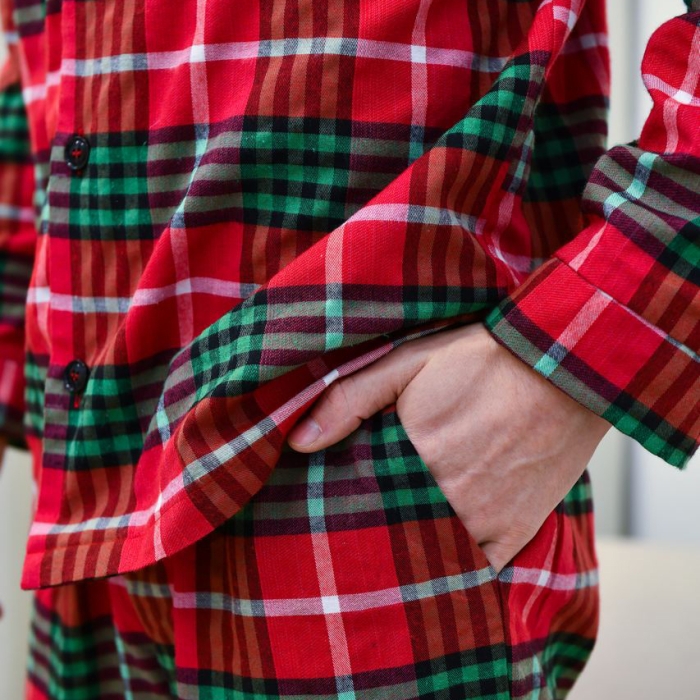 • Зручний крій – чоловіча піжама в клітинку має комфортний фасон, що не обмежує рухів, дозволяючи вам почуватися вільно і зручно.