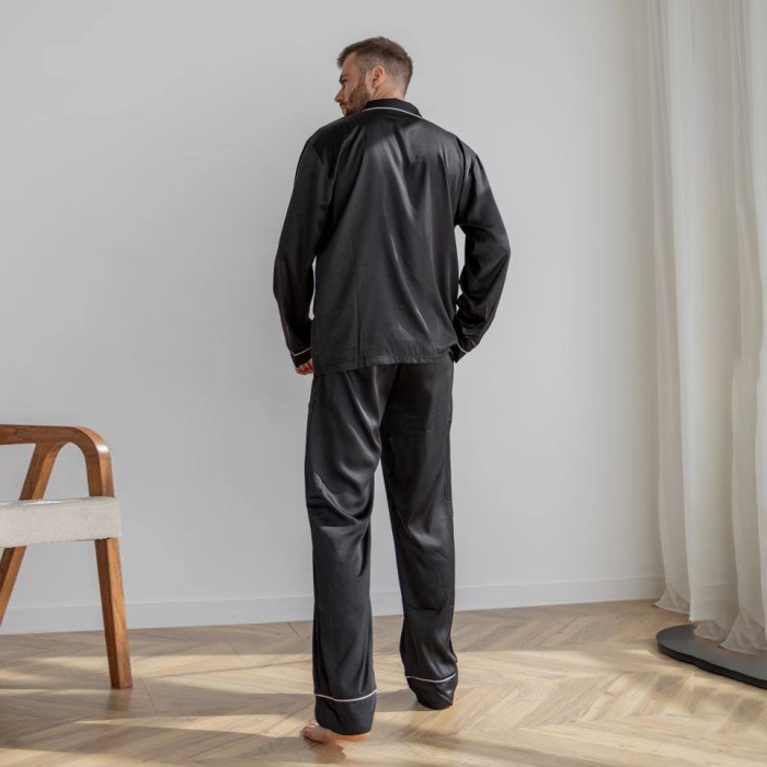 • Натуральна тканина – якісний шовк піжами, дарує ніжність і легкість на шкірі. Матеріал не викликає подразнень, що особливо важливо для чоловіків із чутливою шкірою.
