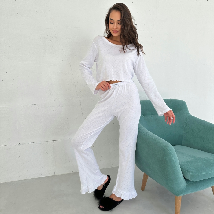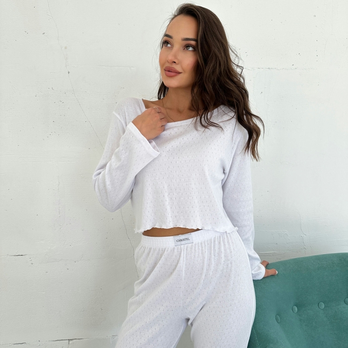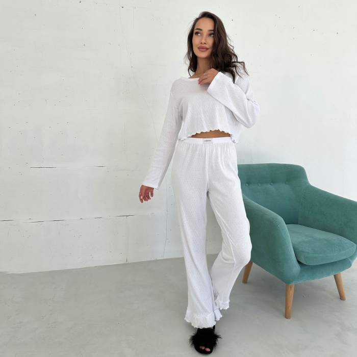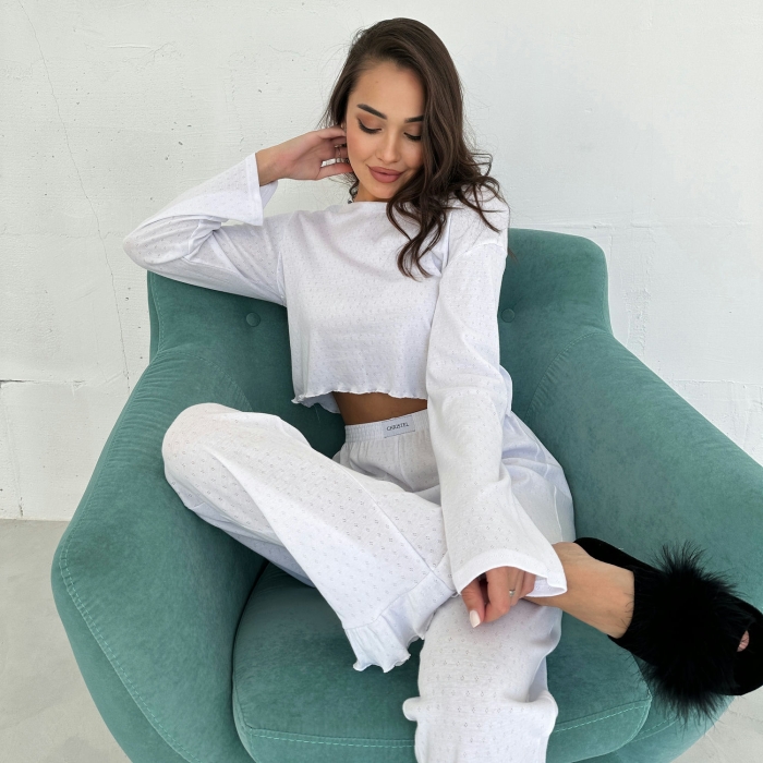 • Стильний сучасний крій – укорочений верх і штани з високою талією створюють трендовий образ, який підходить як для дому, так і для прогулянок.