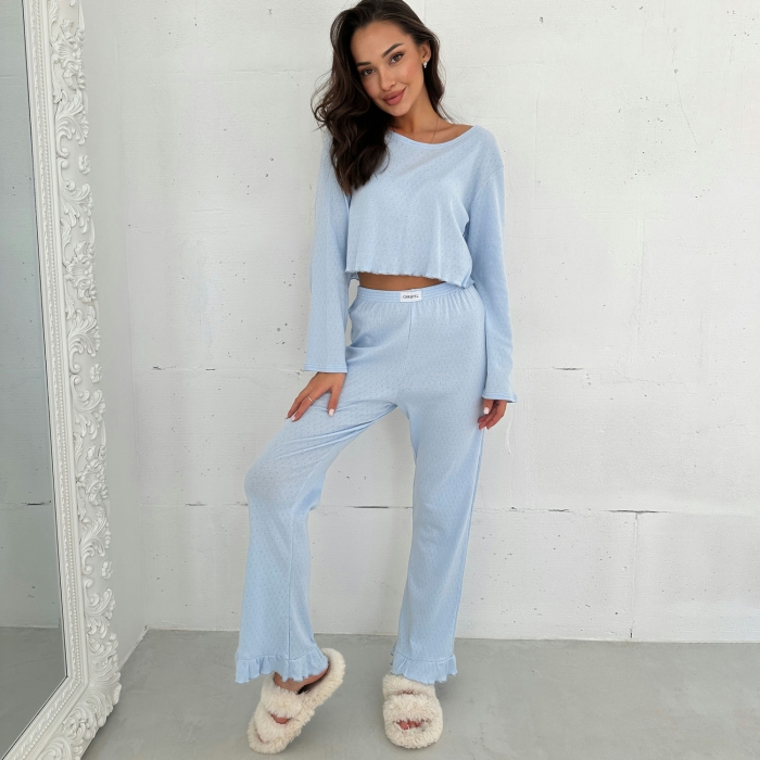 • Стильний сучасний крій – укорочений верх і штани з високою талією створюють трендовий образ, який підходить як для дому, так і для прогулянок.