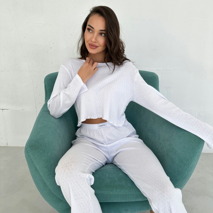 • Стильний сучасний крій – укорочений верх і штани з високою талією створюють трендовий образ, який підходить як для дому, так і для прогулянок.