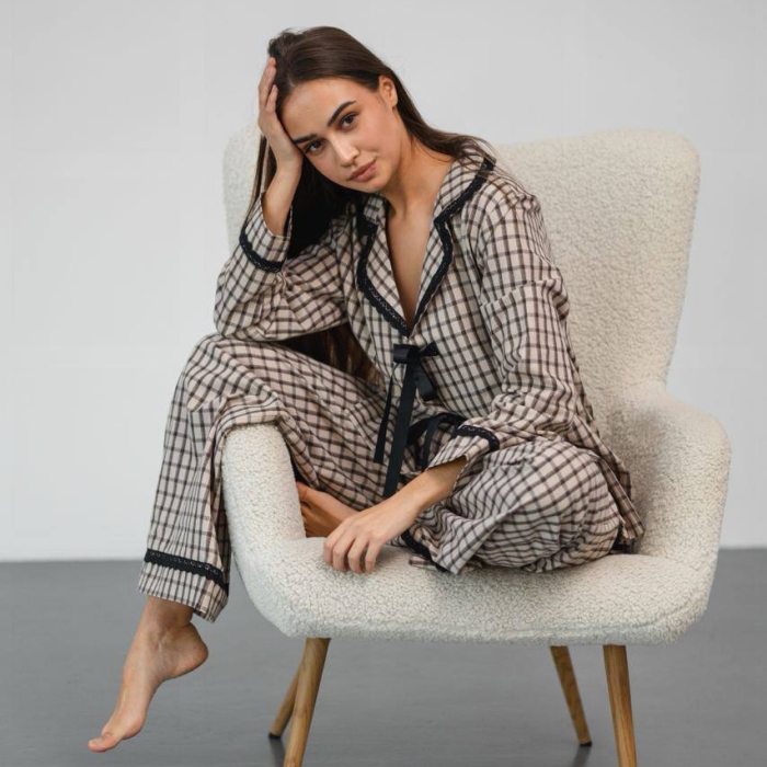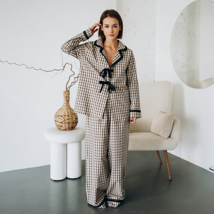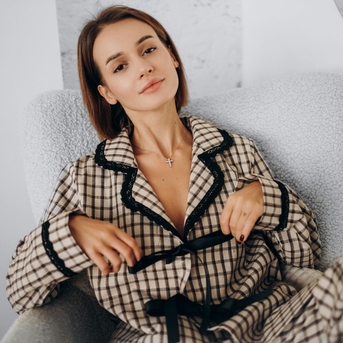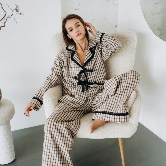 - Стильна піжама в клітинку – класичний візерунок ніколи не виходить із моди.