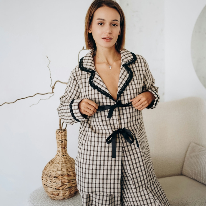 Betty – це класична жіноча піжама в клітинку, яка поєднує комфорт, тепло і елегантний дизайн.