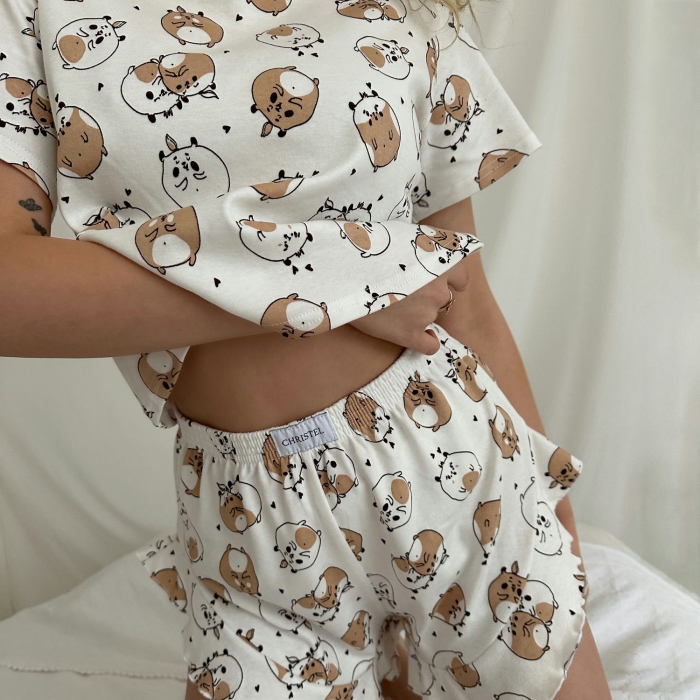 - Ідеальний крій – футболка і шорти створені для максимального комфорту та свободи рухів, що робить піжаму чудовим варіантом для сну та відпочинку вдома.