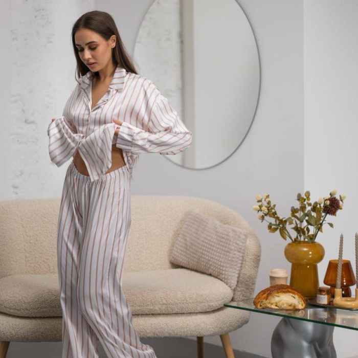 • Стильний дизайн у смужку – класичний принт залишається поза часом, створюючи вишуканий та модний образ навіть удома.