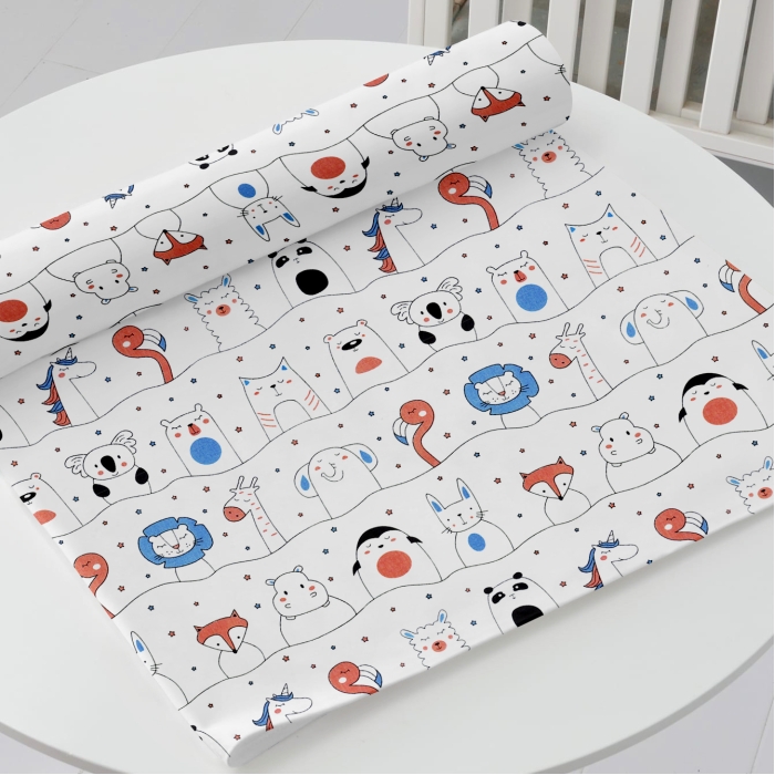 Теги: , Звірятка різнокольорові на мотузках на білому PL 00312, Махра біла вологостійка АКВАСТОП T / PL, Білий, Тварини, Ранфорс, 70х120 см, Багаторазова непромокаюча пелюшка 70х120 ANIMALS LINE