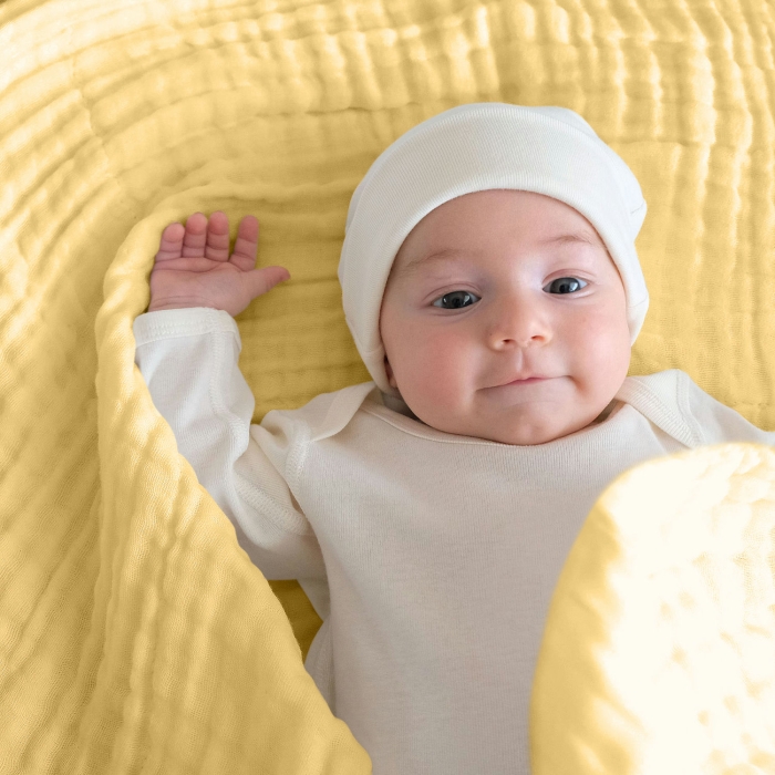 Огорніть свою дитину ніжністю та комфортом з багаторазовими мусліновими пелюшками COSAS з 100% органічної бавовни.
