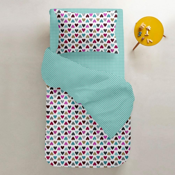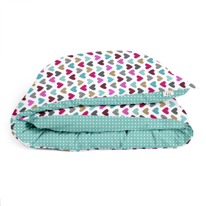 Теги: , серце, серця, сердечко, сердечка, горох, горошок, крапки, Бірюзовий, Серця, Ранфорс, 110х140 см, Підковдра дитяча 110х140 LOVE
