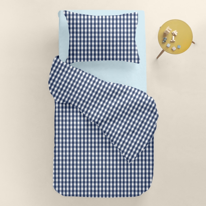 Теги: , , Синій, Геометрія, Ранфорс, 175х210 см, Підковдра двоспальна 175х210 NAVY CHECK