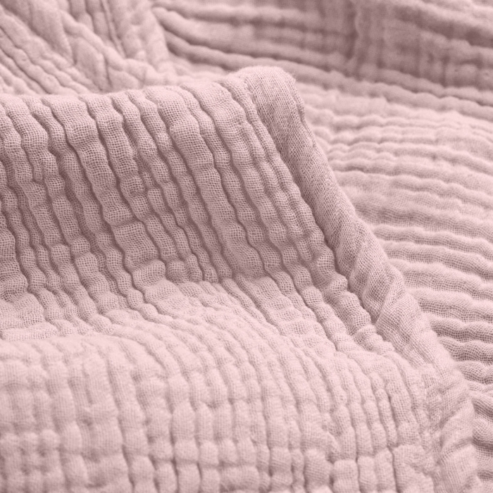 4-шаровий муслін — це багатошарова бавовняна тканина, яка поєднує легкість, м’якість і здатність утримувати тепло. Вона ніжна до шкіри, добре пропускає повітря та ідеально підходить для щоденного використання.