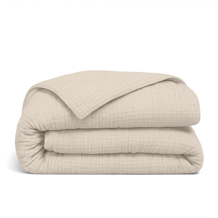 4-шаровий муслін — це багатошарова бавовняна тканина, яка поєднує легкість, м’якість і здатність утримувати тепло. Вона ніжна до шкіри, добре пропускає повітря та ідеально підходить для щоденного використання.