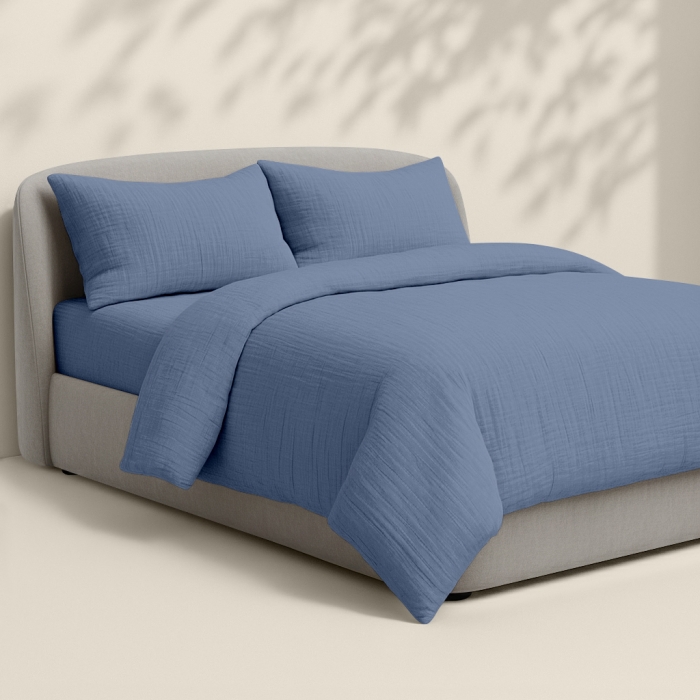 4-шаровий муслін — це багатошарова бавовняна тканина, яка поєднує легкість, м’якість і тепло. Муслінова постільна білизна добре дихає, ніжна до шкіри та підходить для щоденного використання.