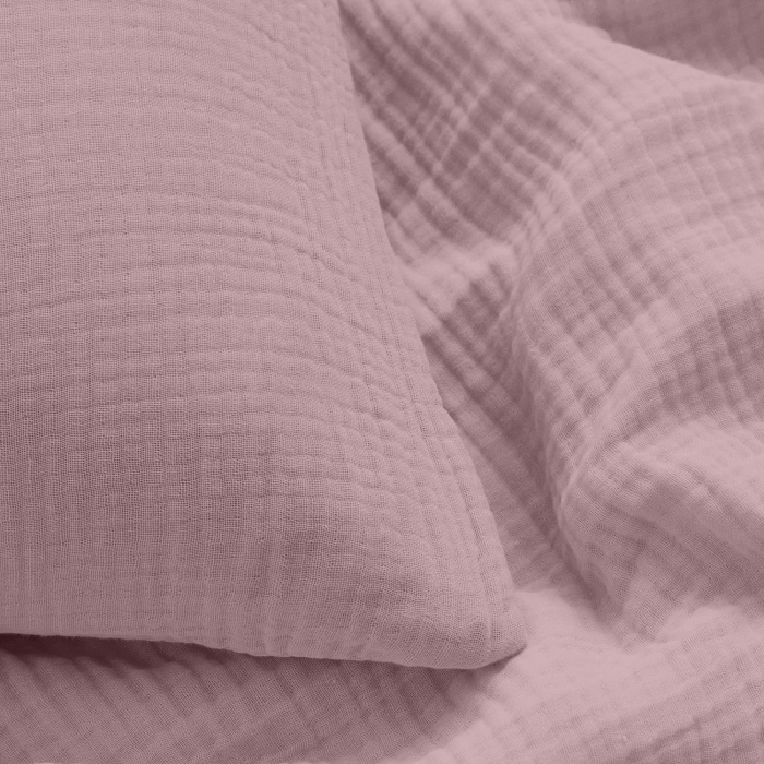 4-шаровий муслін — це багатошарова бавовняна тканина, яка поєднує легкість, м’якість і тепло. Муслінова постільна білизна добре дихає, ніжна до шкіри та підходить для щоденного використання.