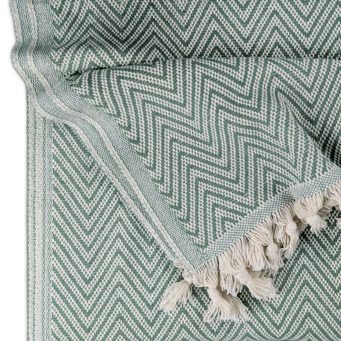 Матеріал з якого виготовлений плед - 100% органічна трикотажне полотно, що виробляється з бавовняної пряжі складним переплетенням, має сертифікат якості Oeko-Tex.