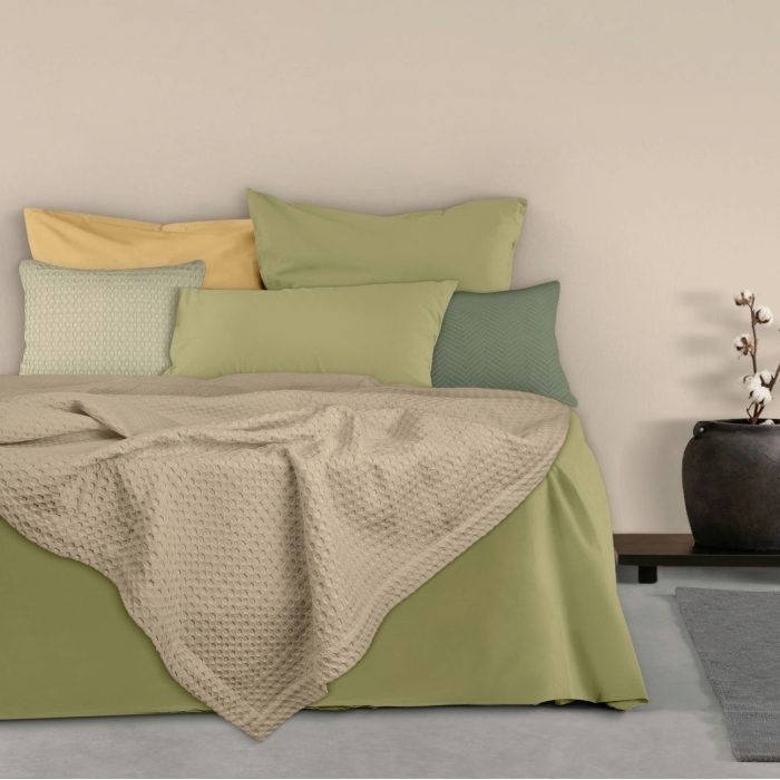• Поєднується з декоративними подушками: ви можете створити стильний та затишний простір у спальні та вітальні, поєднуючи плед COSAS з декоративними подушками в схожих кольорах або контрастних відтінках.