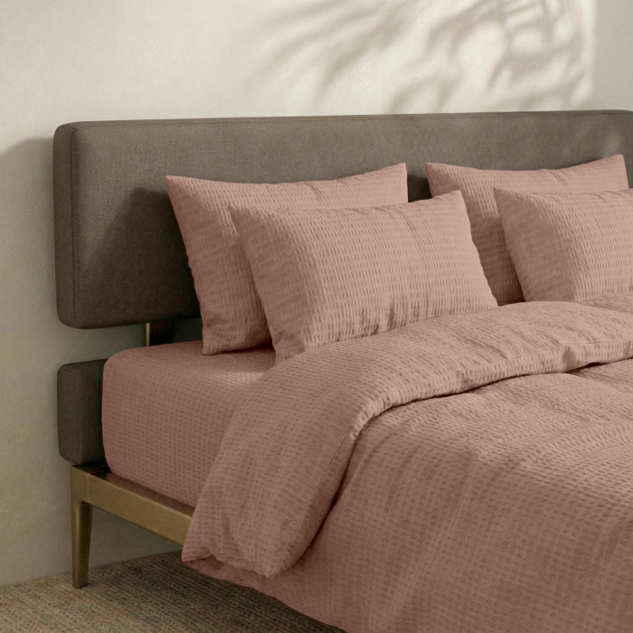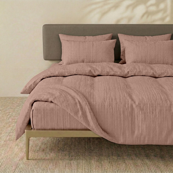 Комплекти COSAS виготовлені зі 100% натуральної текстурованої бавовни (жатка) — м’якої, повітропроникної та приємної на дотик тканини з легкою рельєфною фактурою.