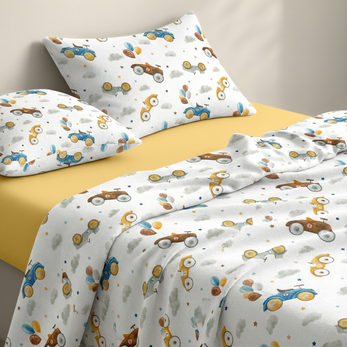 Комплект дитячої постільної білизни з фланелі COSAS ідеально підходить для немовлят та дітей до 5 років. Виготовлений з 100% органічної бавовни, він м'який, приємний на дотик та безпечний для чутливої дитячої шкіри.