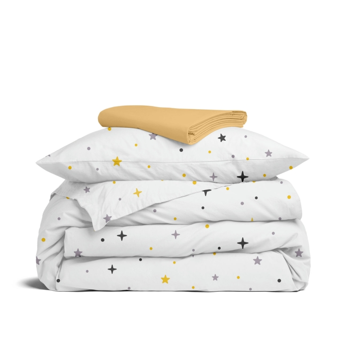 Комплект дитячої постільної білизни COSAS ідеально підходить для немовлят та дітей до 5 років. Виготовлений з 100% органічної бавовни, він м'який, приємний на дотик та безпечний для чутливої дитячої шкіри.