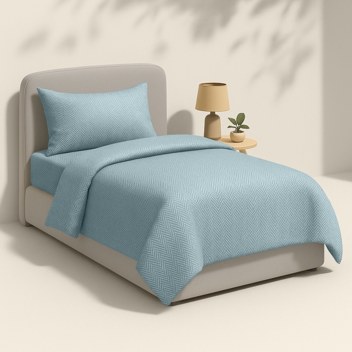 Цей комплект поєднує дві преміум тканини — фактурний Армур і варену бавовну, щоб подарувати дитині відчуття м’якості, комфорту й спокійного сну щоночі.