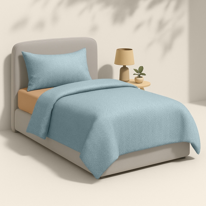 Цей комплект поєднує дві преміум тканини — фактурний Армур і варену бавовну, щоб подарувати дитині відчуття м’якості, комфорту й спокійного сну щоночі.