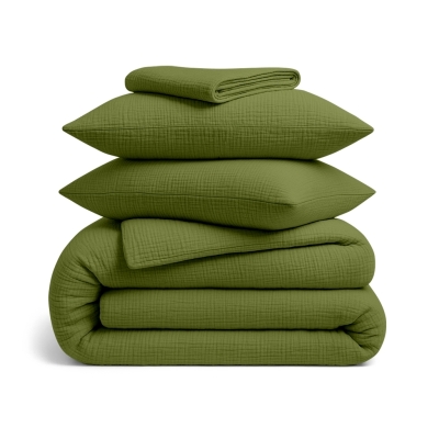 Двоспальна постільна білизна муслін з простирадлом на резинці AVOCADO