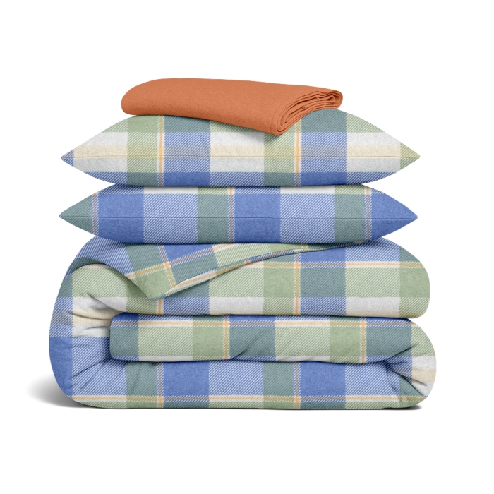 Двоспальна постільна білизна фланель з простирадлом на резинці OCEAN TARTAN CS5
