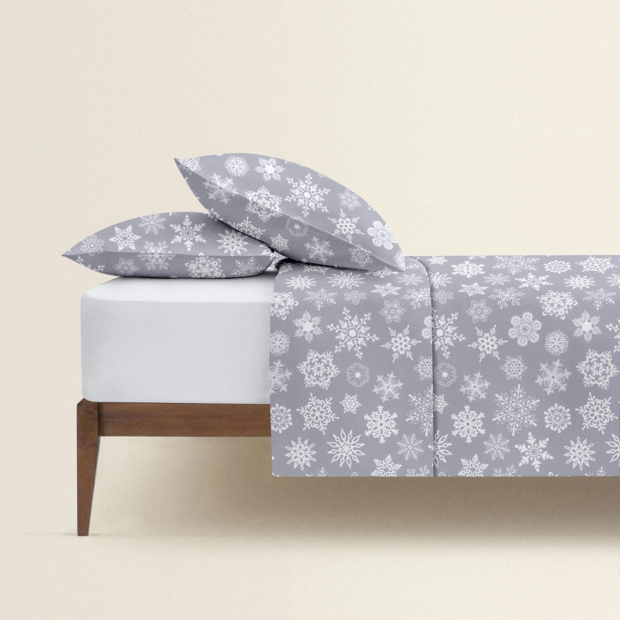 Двоспальна постільна білизна фланель з простирадлом на резинці SNOWFLAKES CS2