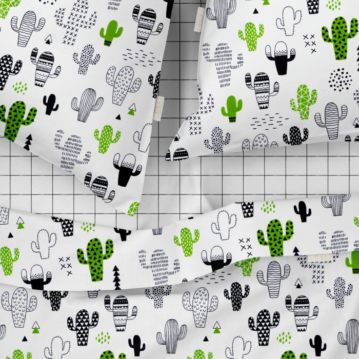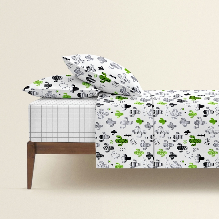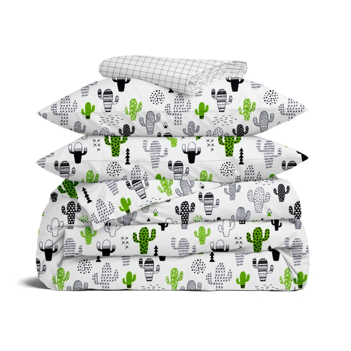 Двоспальна постільна білизна з простирадлом на резинці CACTUS CS19