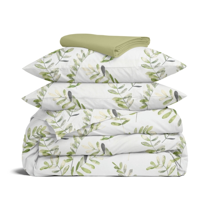 Двоспальна постільна білизна з простирадлом на резинці FOLIAGE CS2