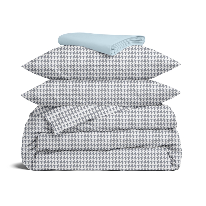 Двоспальна постільна білизна з простирадлом на резинці HOUNDSTOOTH CS3