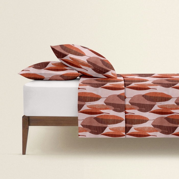 Двоспальна постільна білизна з простирадлом на резинці LEAFS
